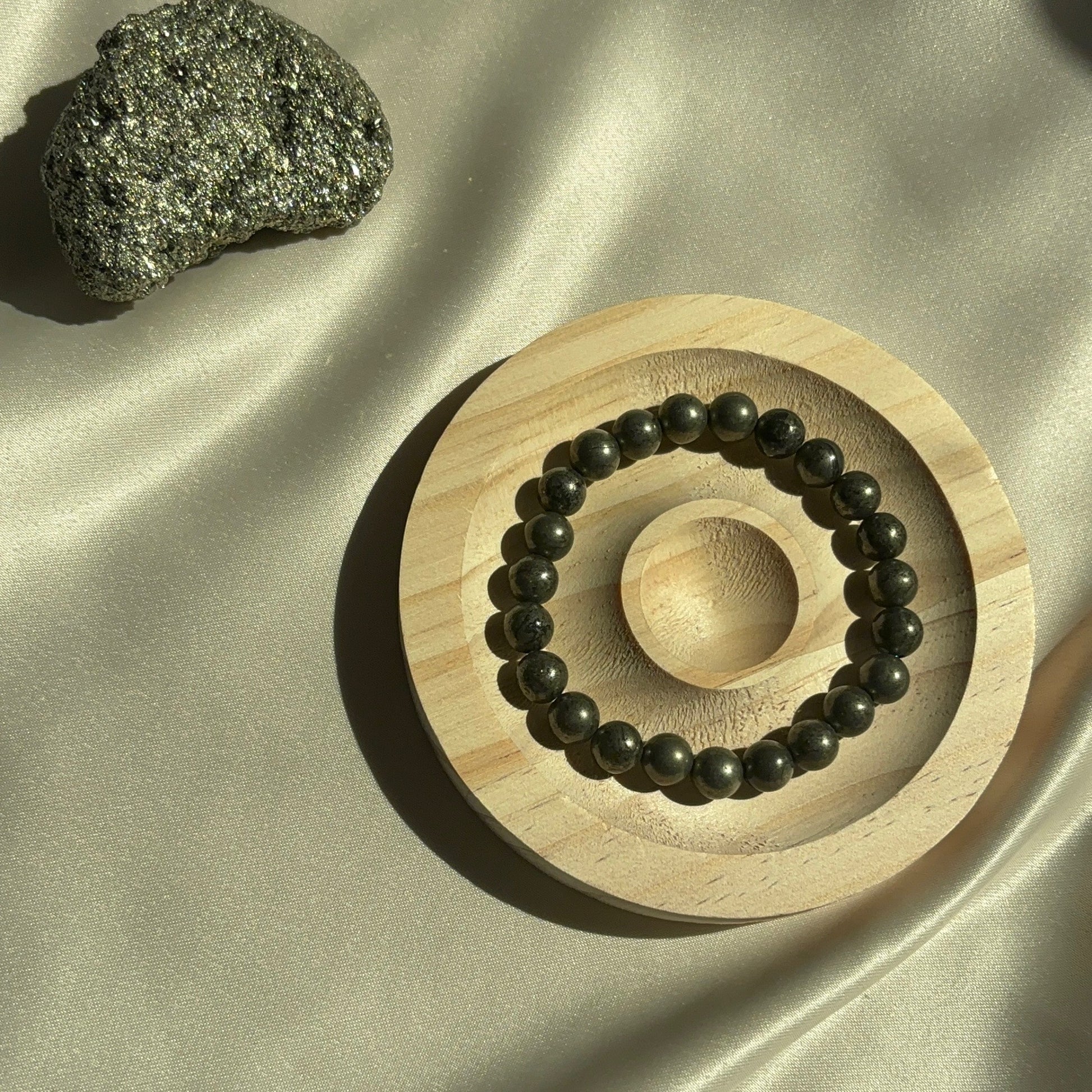 Benefits: Wearing the NSIND’ABATHAKATHI bracelet draws abundance into your life while shielding you from negative influences. Known as “Fool’s Gold,” Pyrite carries the vibration of wealth, prosperity, and success. It creates a protective barrier against harmful energies, keeping you grounded and focused on your goals. Whether you’re manifesting financial growth, seeking stability, or simply needing energetic protection, NSIND’ABATHAKATHI reminds you that you are worthy of abundance and safe in your power.